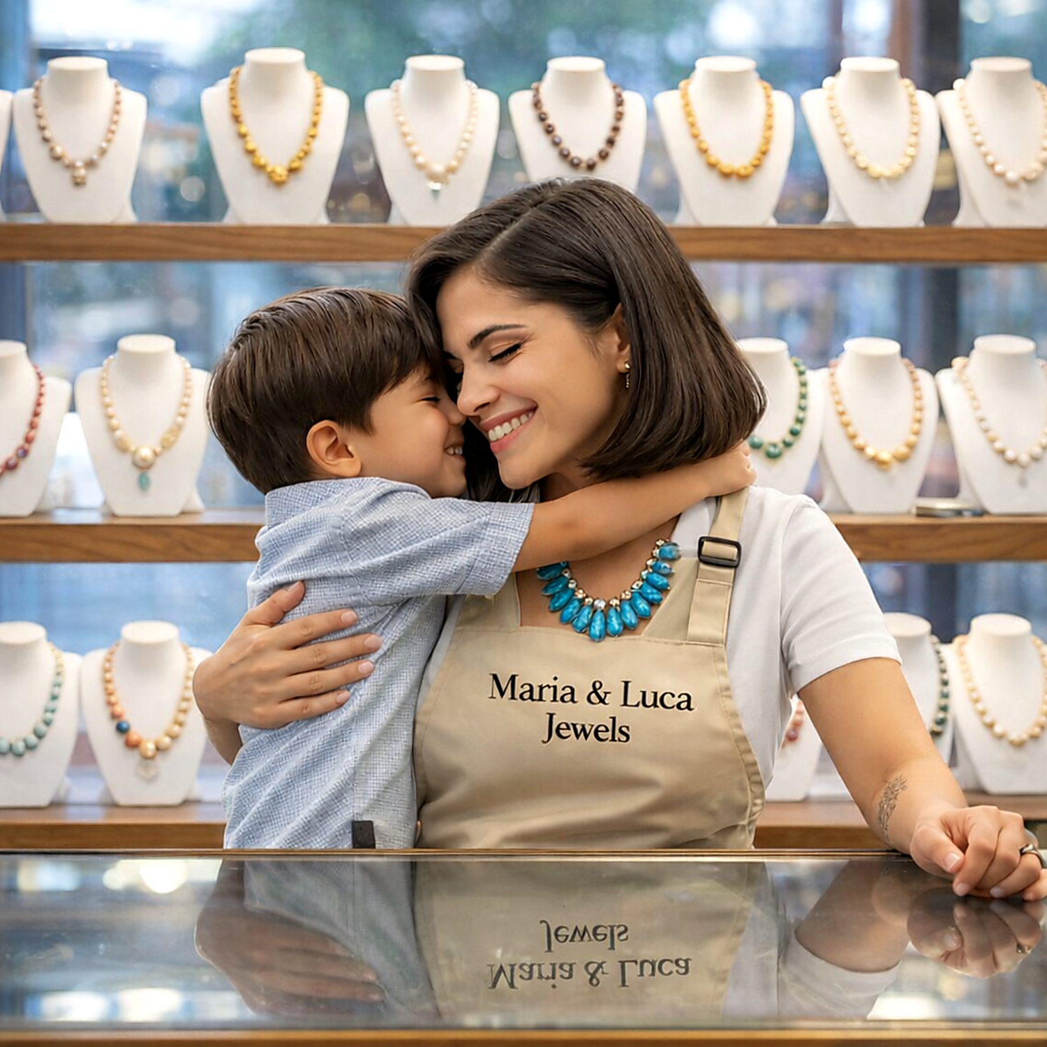 Chez Maria & Luca, nous sommes bien plus qu’une bijouterie — nous sommes une famille attentionnée. Que vous cherchiez la pièce parfaite ou un conseil, nous sommes là pour vous accompagner. Nous croyons en la bienveillance, le respect et le soutien mutuel.